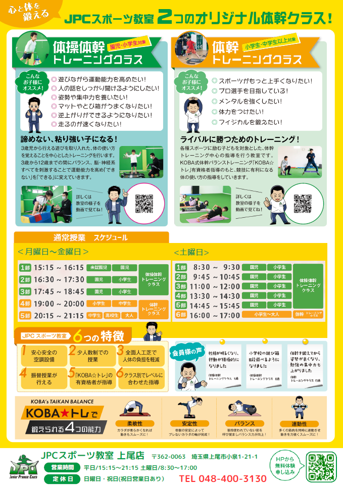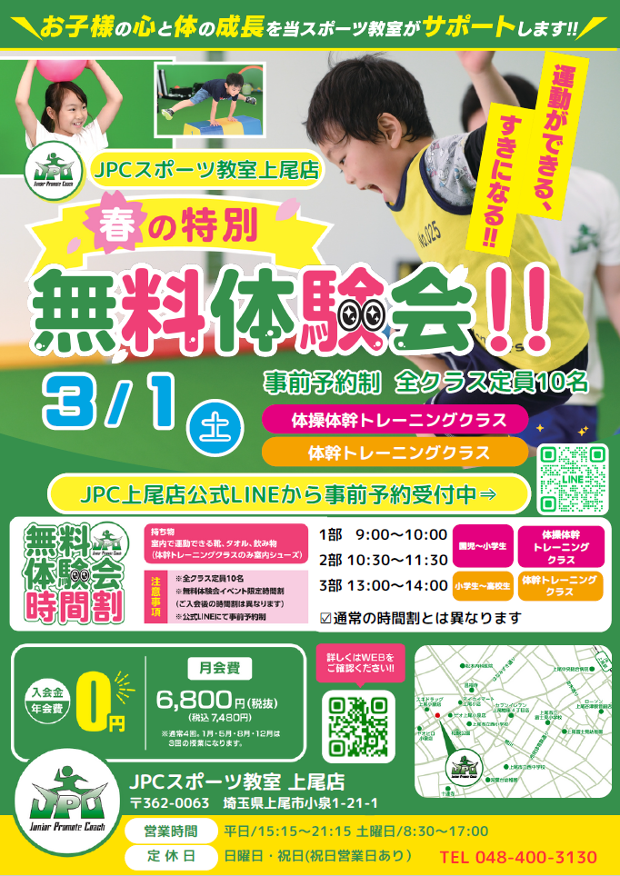 JPCスポーツ教室上尾店では、3月1日(土)特別無料体験会を開催します
