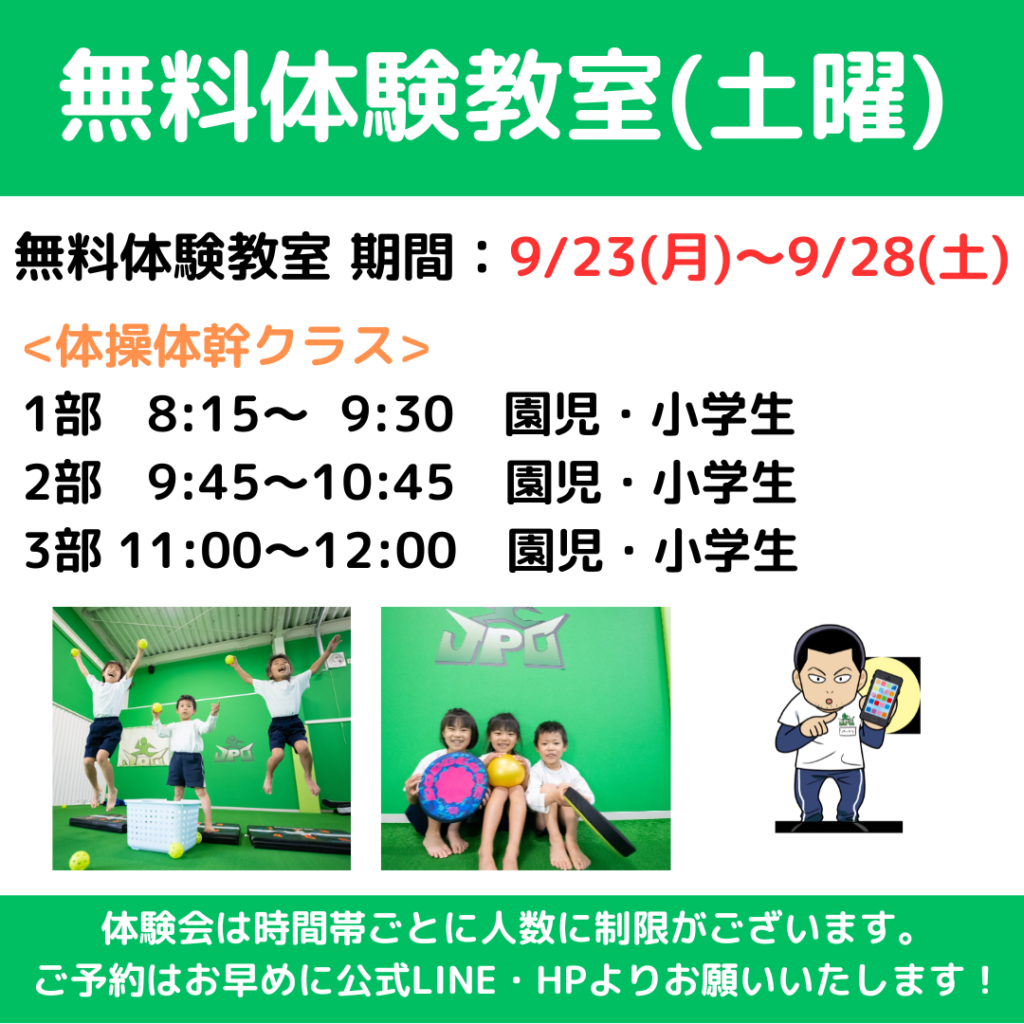 また、9月23日(月)~9月28日(土)には無料体験会を実施いたします。