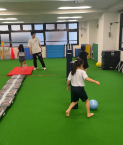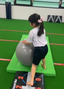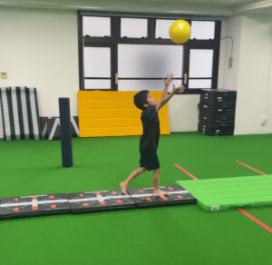 マットから落ちないように意識したり、ポールに当たらないようにしたりビジョントレーニングにもなります。