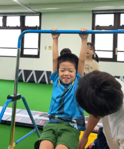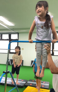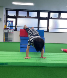 鉄棒ぶら下がり、支持、側転、倒立練習!