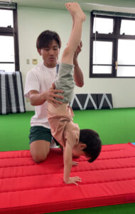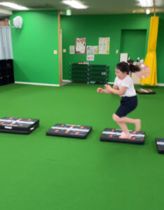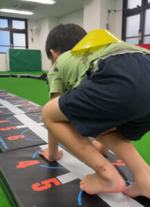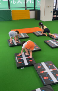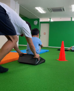 正しい姿勢を保つにはこういったマーカーを使ったトレーニングも有効です! 上下左右のブレを少なく動物模倣をしていきます!