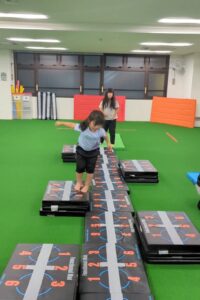 片足あげてバランス向上 コーンを避けることでルール理解、ボディイメージ向上 厚木・海老名エリアで体幹強化に強い体操教室/スポーツ教室をお探しなら、JPCスポーツ教室厚木店 へご相談ください(伊勢原市・...