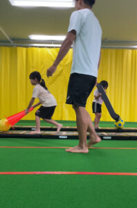 色々な重さの道具、ボールを使うことで調整力が身につきます! 楽しく遊んで色々な能力を育んでいきましょう!