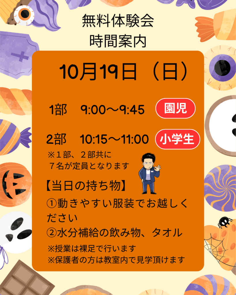 10月はハロウィン特別イベントとして、「無料体験会」を開催します。