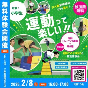 JPCスポーツ教室(TOP) » 福岡長丘店 » ブログ » 2/1(土)・2/8(土) 体操体幹トレーニングクラス無料体験会開催!