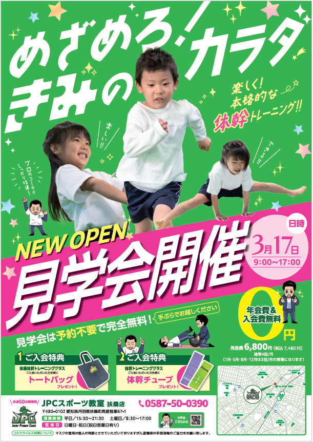 いよいよ3月17日(日)にJPCスポーツ教室扶桑店がグランドオープンします✨✨✨3月17日のオープンイベントでは*誰でも予約なしで参加が可能です♥*授業で使う用具を使って、お子様が楽しんでもらえる遊び...