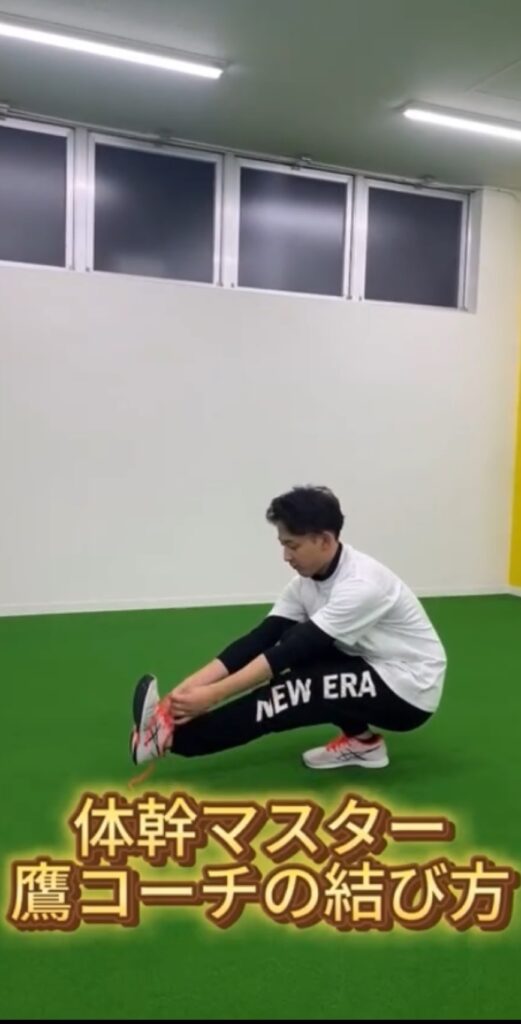!!注目‼️  これが鷹コーチの靴の結び方だ!!皆も体幹を鍛えて出来るようになろう!!お父さんお母さんもお子様と一緒にやってみてください!😆意外に難しいですよ🤣 出来るようになって学校で友達に披露して...