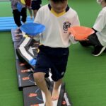 マーカーやボールを持ち、落とさないように渡れるかなど様々なことに挑戦しました!!