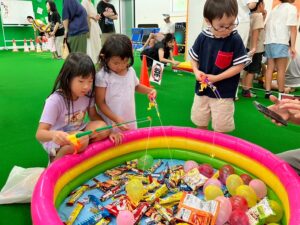 集中して景品を狙う姿や、成功したときの子どもたちの笑顔、そんな姿を優しく見守る親御様の表情など