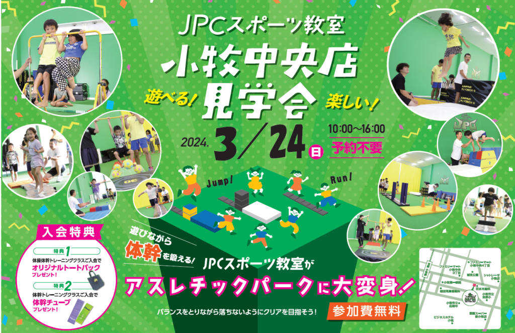 🌟春の入会キャンペーン🌟新規会員様向け、店舗見学会を開催します!!!新学期に向けて、お子様の新しい習い事は、JPCスポーツ教室にお任せ下さい!!!!!!3/24(日)のイベントは”10時から 16時”...