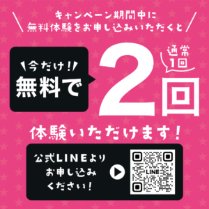 キャンペーン期間中に無料体験を申し込むと通常無料体験は1回ですが、