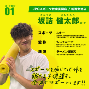 JPCスポーツ教室長岡店/新潟女池店コーチの坂詰健太郎(さかつめ けんたろう)です!