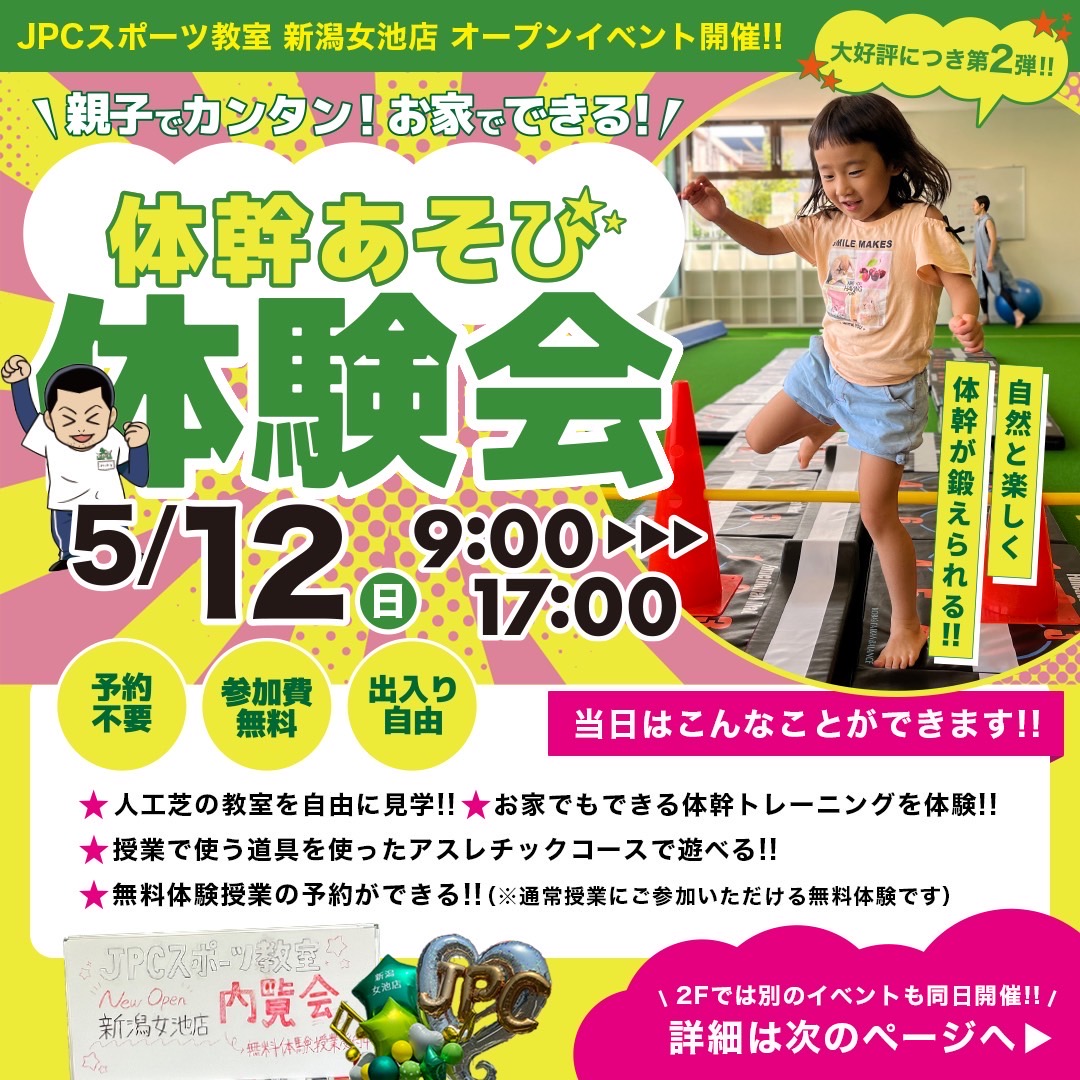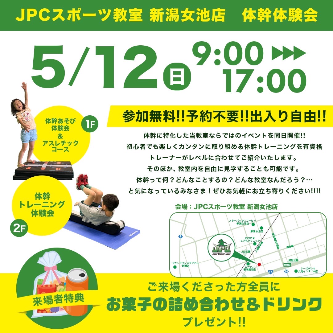 こんばんは🌝💫 JPCスポーツ教室新潟女池店の白崎です🍓 いつも女池店のHPをご覧いただきありがとうございます🎶 なんと‼️なんと‼️ 大好評につき第2弾‼️ ⭐️体験会開催⭐️ 5月12日(日) 9...