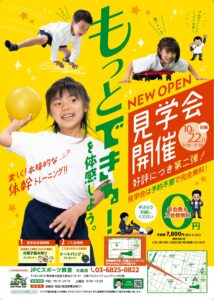 JPCスポーツ教室大森店では、10月22日(日)9時~17時で第2回見学会を実施します❗️ 見学会は予約無し&持ち物不要で店内や普段授業に使う器具等をご見学いただけます。 ・運動が苦手なお子様 ・スポ...