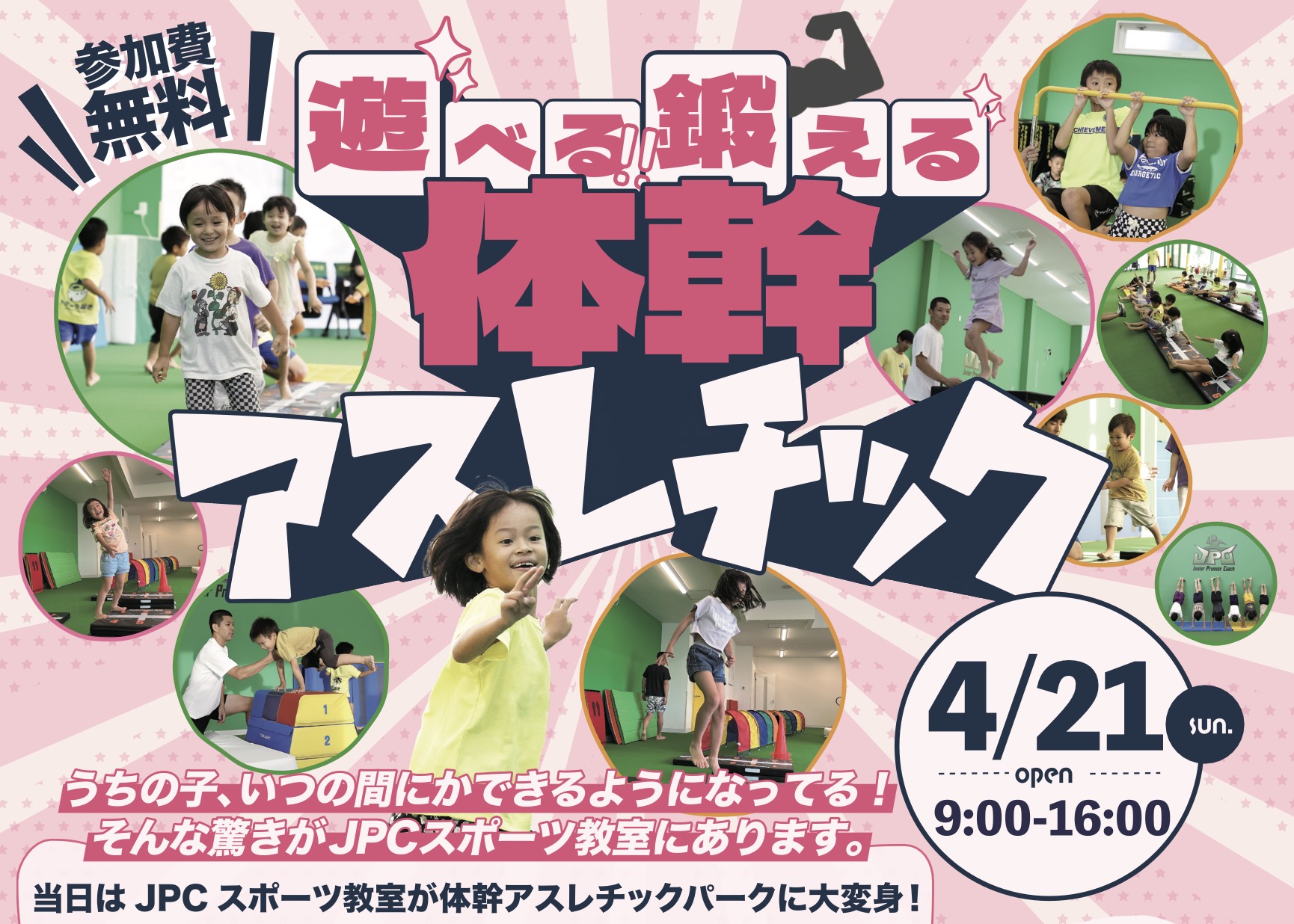 JPCスポーツ教室が体幹アスレチックパークに大変身!! 日時: 4月21日(日) 9時〜16時 場所: JPCスポーツ教室大森店内(イトーヨーカドー大森店さんのすぐ隣の建物です❗️) 当日は実際の授業...