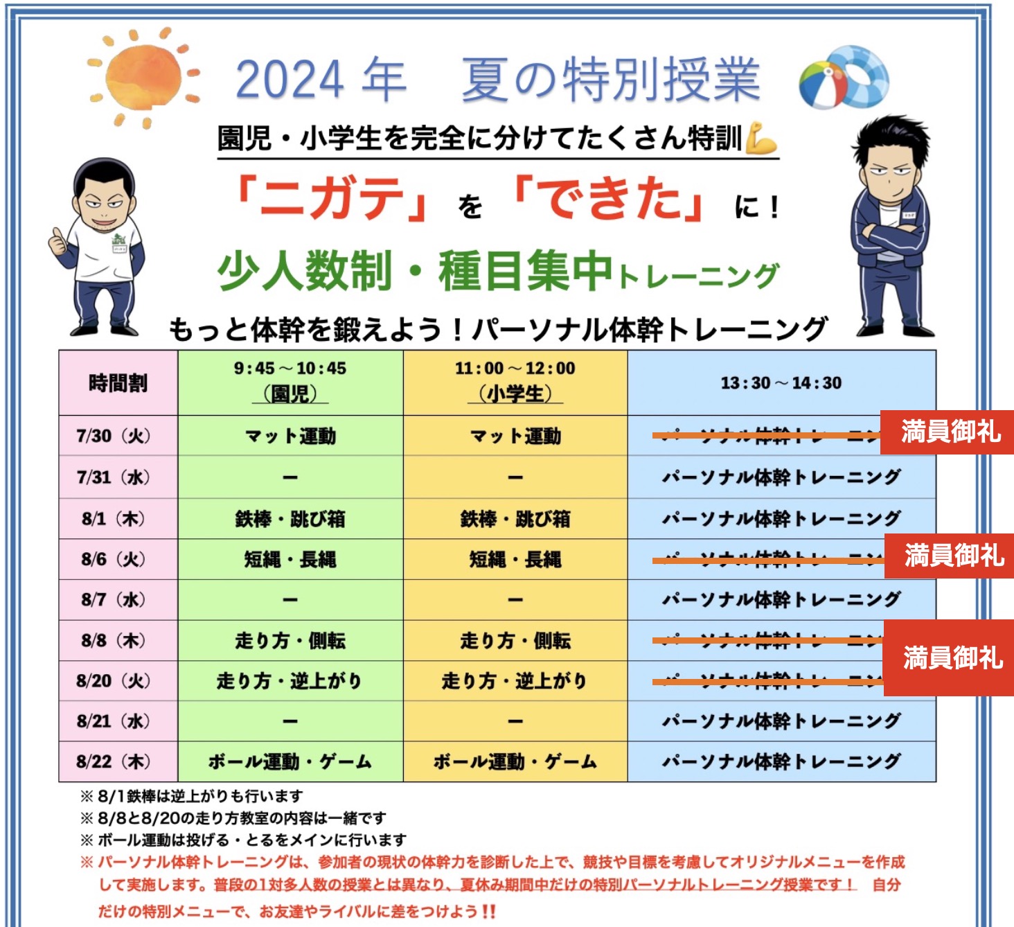 夏休み期間中に少人数制での特別授業を行います🌻 全クラス保護者の方の店舗内での見学が可能となります👍 先着順でのご案内です!定員に達したクラスや、定員まで残り僅かなクラスも出てきましたので、ご希望の方...