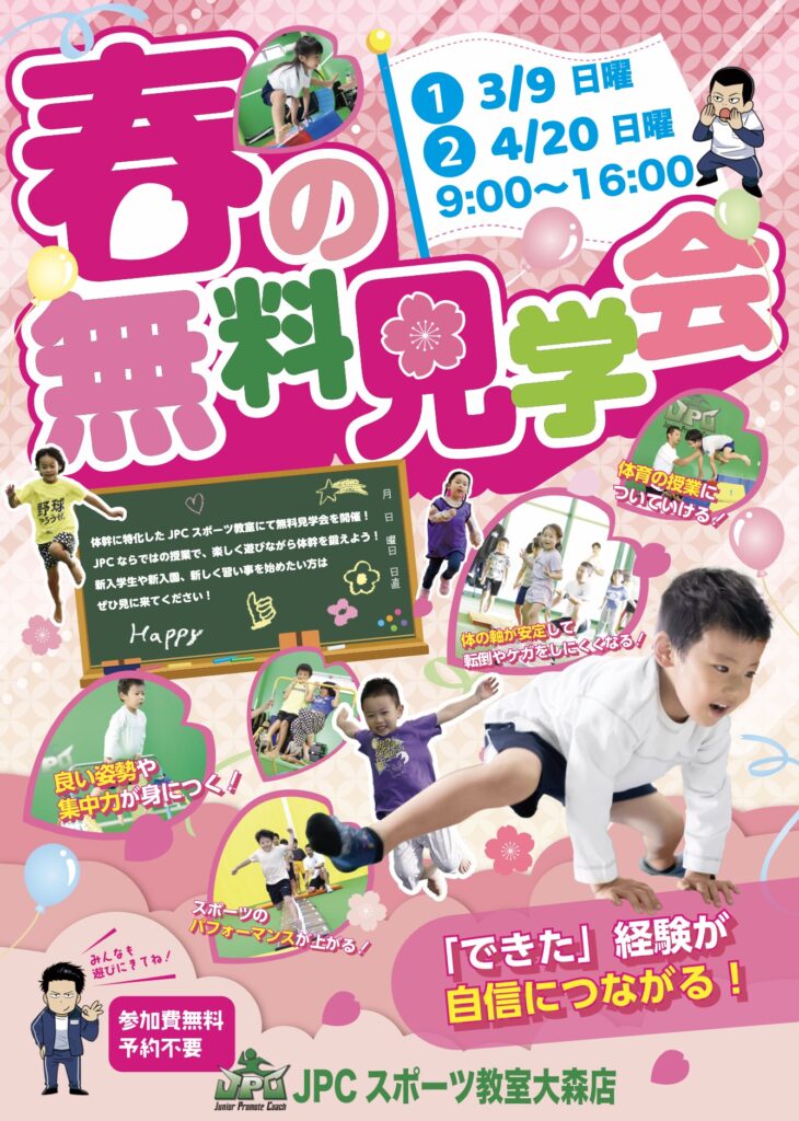 JPCスポーツ教室(TOP) » 大森店 » イベント情報 » 4月20日(日)🌸春の無料見学会開催!