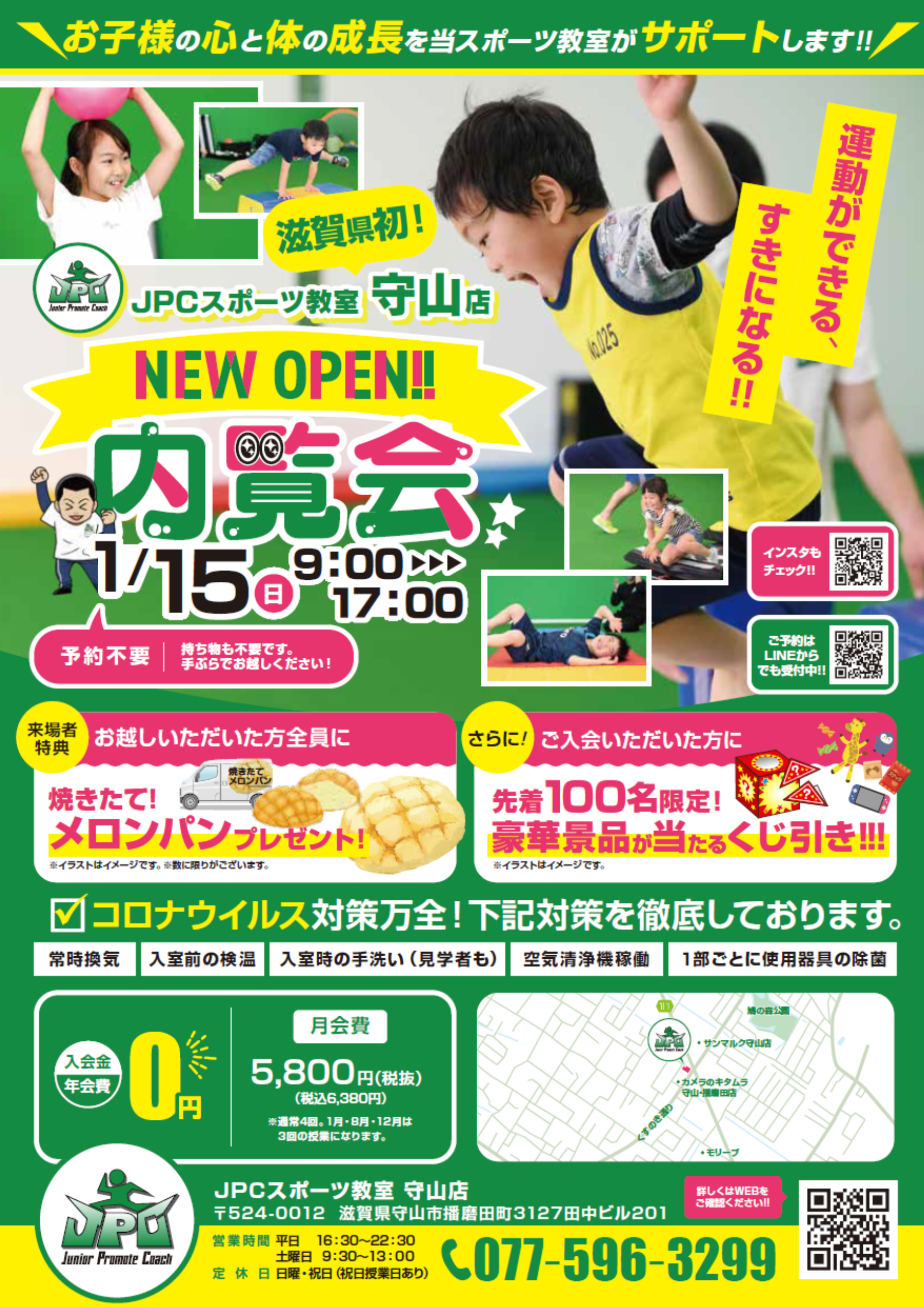 JPCスポーツ教室守山店では、新型コロナウイルス感染拡大を防ぐために下記の通り対応・対策を行っております。 あらゆることに万全を考慮し対応・対策を行っております。     1.新型コロナウイルス対策の...