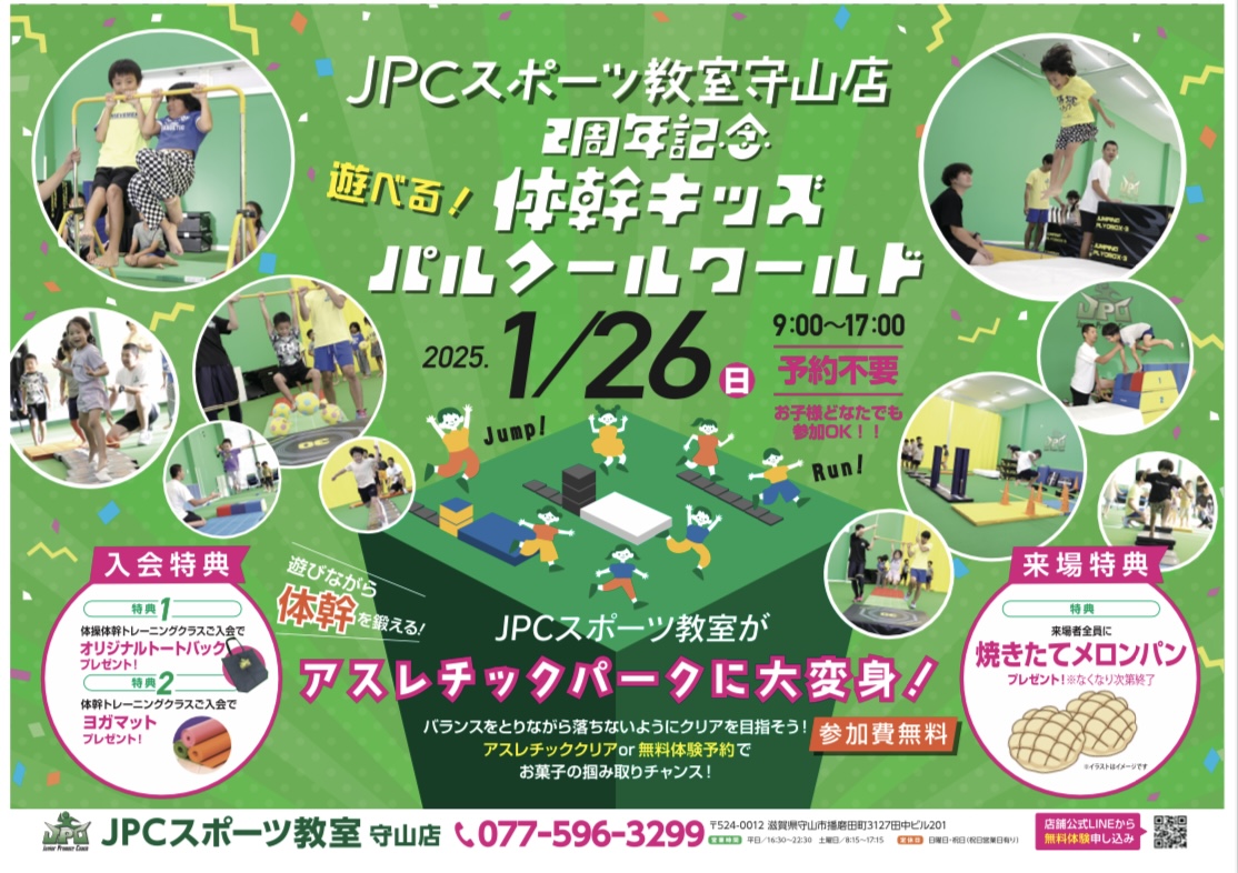 !!祝!! 〜2周年記念〜 !\体幹キッズパルクールワールド/! JPCスポーツ教室守山店、このたび2周年を迎えることができました!🎉 これもひとえに、皆様の応援やご利用があったからこそですm(__)...