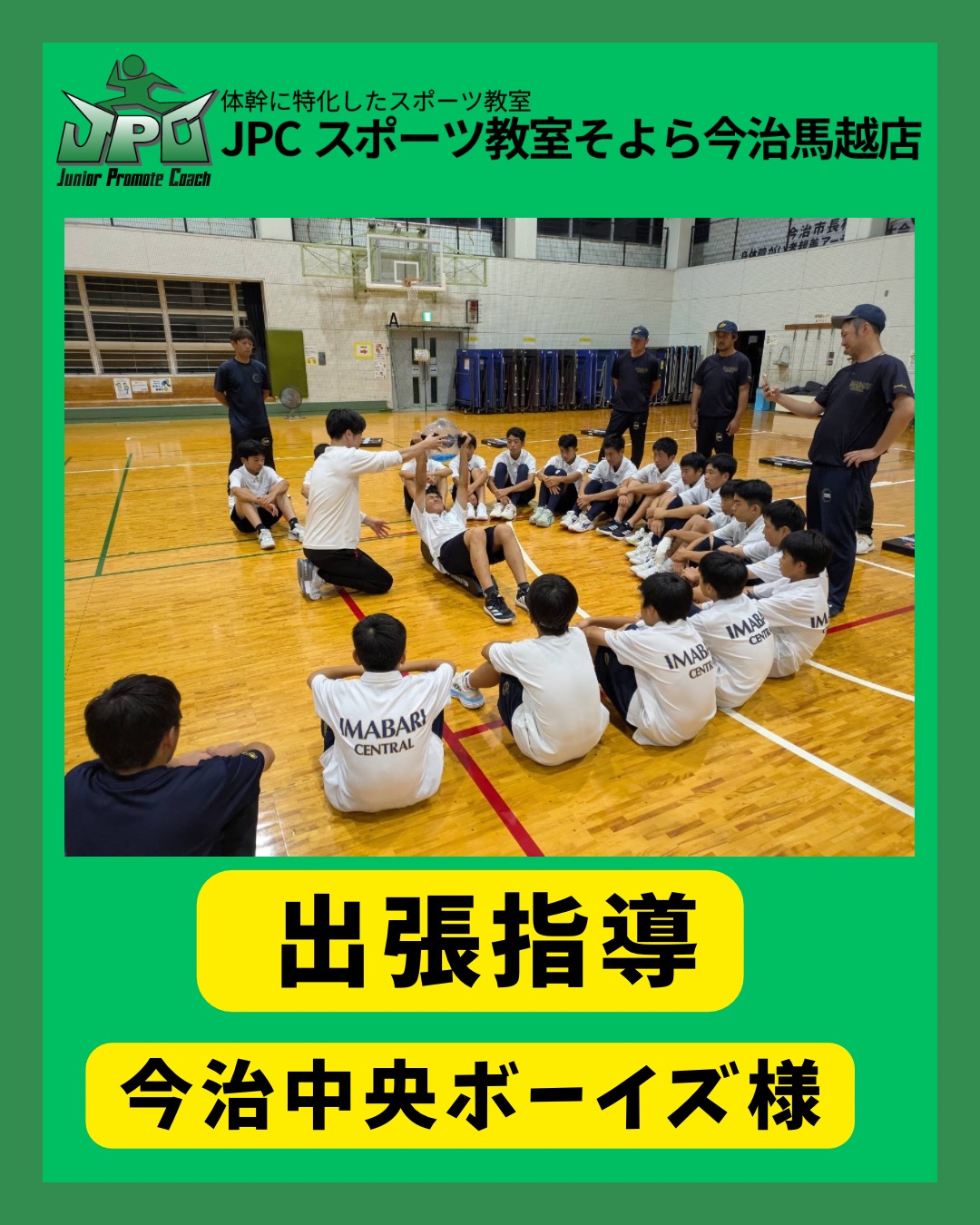 9/25(木)に今治中央ボーイズ様の出張指導を実施させていただきました⚾️⚾️ 野球に必要な動作や重要性を理解していただきながら一生懸命にトレーニングを頑張ってくれました🔥 また、JPCスポーツ教...