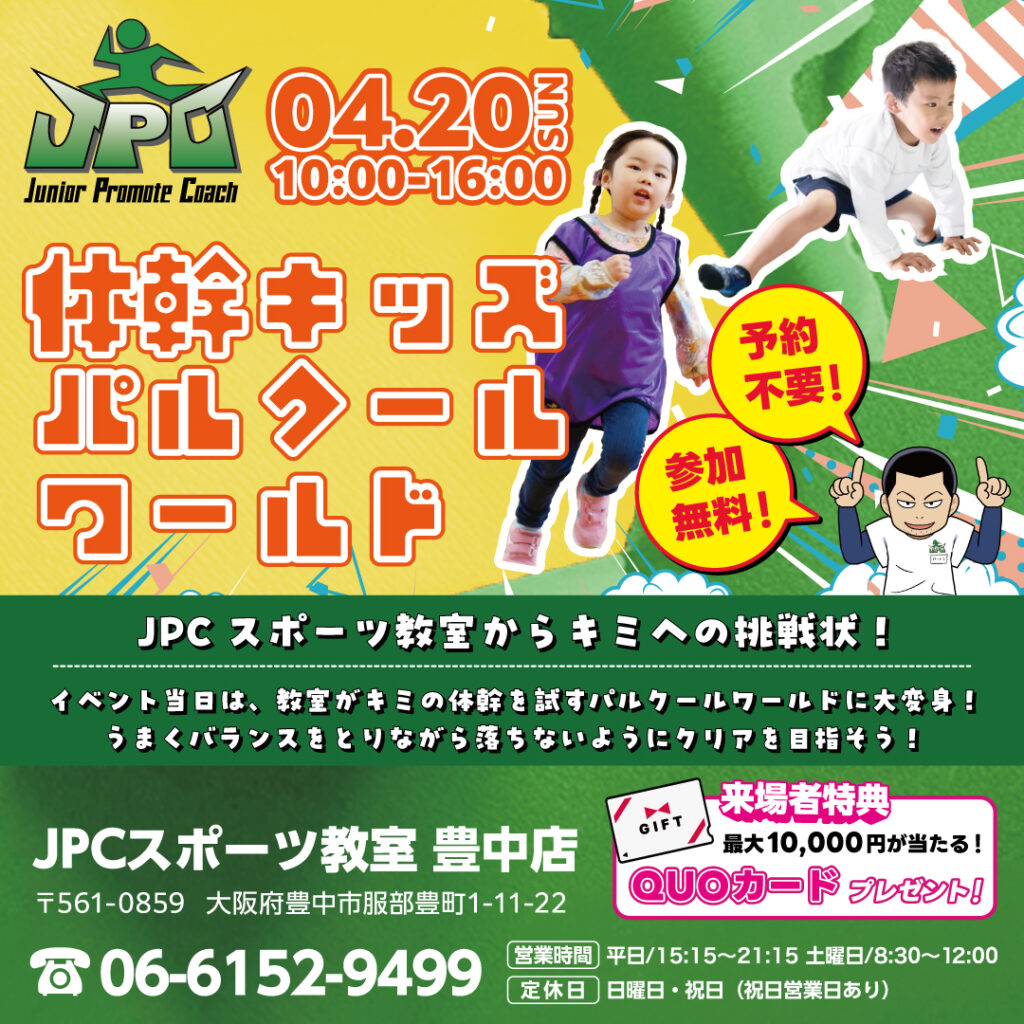 「体幹キッズパルクールワールド」にご来場いただいた方にはQUOカードのプレゼントも!!