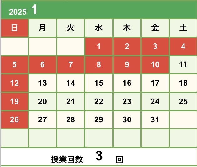 2025年1月のスケージュールになります。